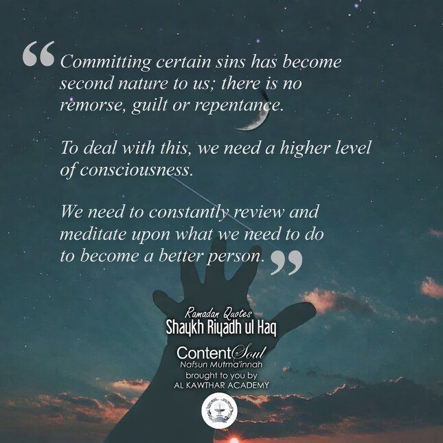 “Committing certain sins has become second nature to us; there is no remorse, guilt or repentance. To deal with this, we need a higher level of consciousness. We need to constantly review and meditate upon what we need to do to become a better person.”
