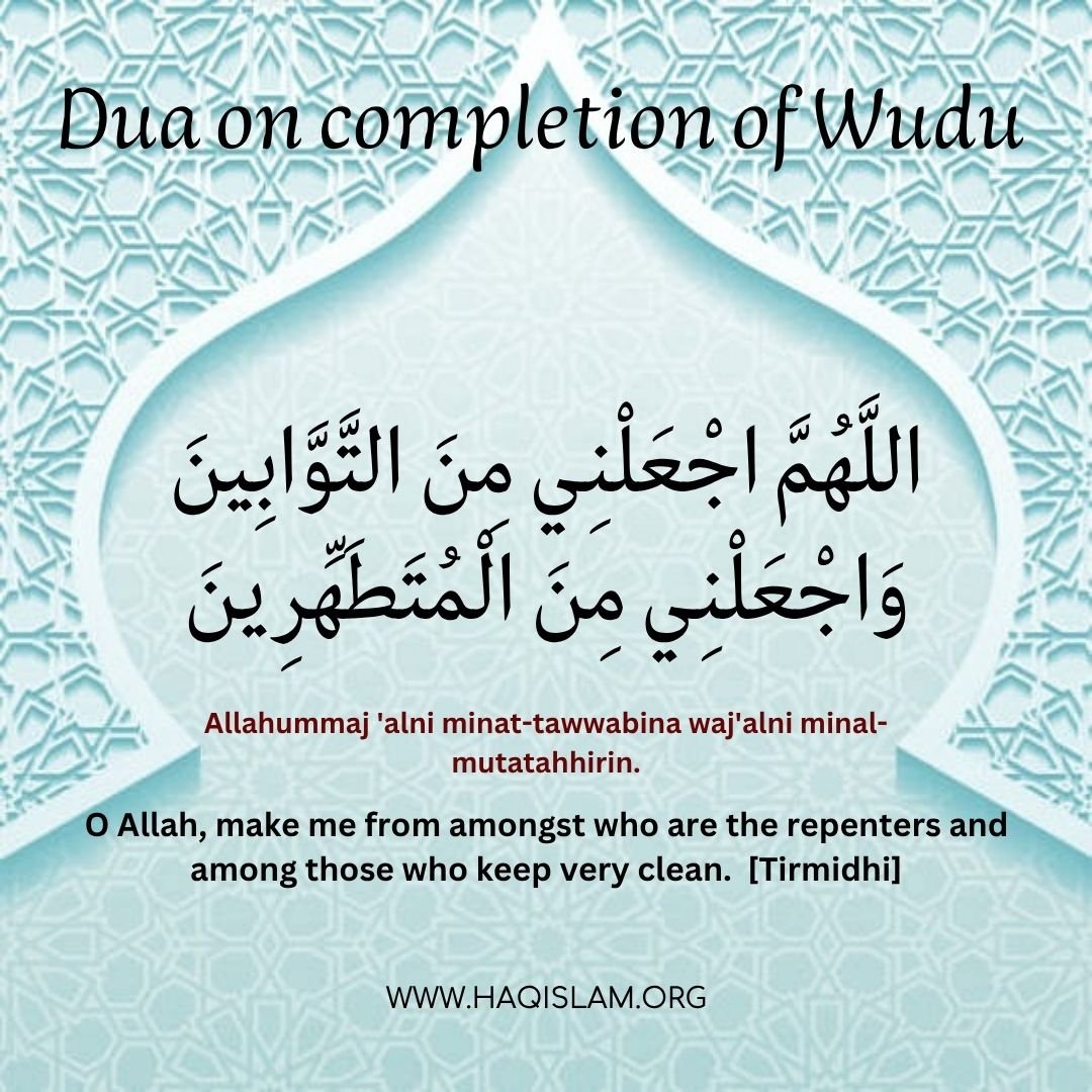 اللَّهُمَّ اجْعَلْنِي مِنَ التَّوَّابِينَ وَاجْعَلْنِي مِنَ الْمُتَطَهِّرِينَ