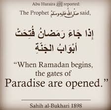 April 9, 2021 Ahmed Hadeeth Leave a comment Gates of Paradise It is narrated by Hadhrat Abu Huraira رضي الله عنه that the messenger of Allah صلي الله عليه و سلم said: إِذَا جَاءَ رَمَضَانَ فُتِحَتْ أَبْوَابُ الْجَنَّةِ “When Ramadan begins, the gates of Paradise are opened.”[Saheeh al-Bukhari] Share this: Click to share on Bluesky (Opens in new window) Bluesky Click to share on Facebook (Opens in new window) Facebook Click to share on X (Opens in new window) X Click to share on Tumblr (Opens in new window) Tumblr Click to share on Pinterest (Opens in new window) Pinterest Click to share on Mastodon (Opens in new window) Mastodon Click to share on Telegram (Opens in new window) Telegram Click to share on WhatsApp (Opens in new window) WhatsApp Click to share on LinkedIn (Opens in new window) LinkedIn More Click to share on Reddit (Opens in new window) Reddit Click to share on Threads (Opens in new window) Threads Click to share on Nextdoor (Opens in new window) Nextdoor HadithRamadan