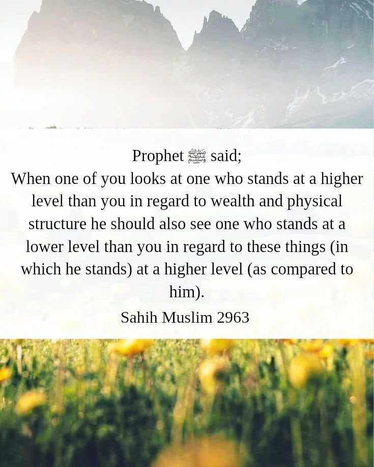 By focusing on those having less than us, instead of obsessing oneself what we don’t have, we nurture humility and show appreciation for the blessings Allah has given us, whilst avoiding ingratitude and greed. Remember, contentment comes not from external possessions and wealth but from an inner sense of thankfulness.
