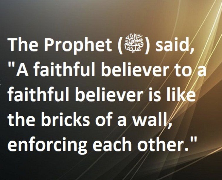 April 16, 2021 Ahmed Hadeeth Leave a comment The believers are like a wall The believers are like a wall whose bricks are fitted tightly together; each one of them supports another. Bukhari Share this: Click to share on Bluesky (Opens in new window) Bluesky Click to share on Facebook (Opens in new window) Facebook Click to share on X (Opens in new window) X Click to share on Tumblr (Opens in new window) Tumblr Click to share on Pinterest (Opens in new window) Pinterest Click to share on Mastodon (Opens in new window) Mastodon Click to share on Telegram (Opens in new window) Telegram Click to share on WhatsApp (Opens in new window) WhatsApp Click to share on LinkedIn (Opens in new window) LinkedIn More Click to share on Reddit (Opens in new window) Reddit Click to share on Threads (Opens in new window) Threads Click to share on Nextdoor (Opens in new window) Nextdoor Like this:Like Loading... Related Hadith