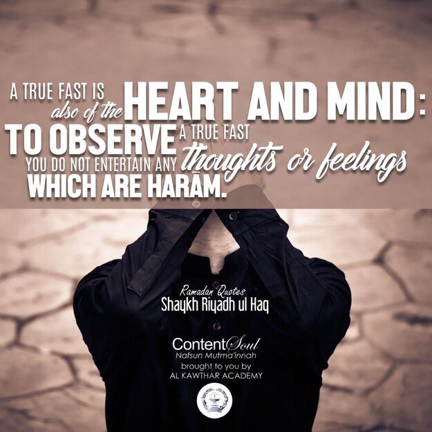 “A true fast is also of the heart and mind: to observed a true fast you do not entertain any thoughts or feelings which are harām.”
